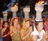 दो दिवसीय धर्मराज पूजा रविवार को संपन्न हो गयी। इस अवसर पर शनिवार की रात और रविवार की सुबह विधि-विधान से पुजारी परेश शर्मा, मलय शर्मा, उत्तम मुखर्जी, हारू शर्मा आदि ब्राह्मणों द्वारा धर्मराज की पूजा-अर्चना की गयी। इस अवसर पर श्रद्धालुओं की भीड़ उमड़ पड़ी। शनिवार की सुबह और शाम में पुजारी माथे पर बाणोश्वर बाबा को लvia जागरण धर्म समाचार