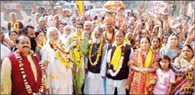 राधावल्लभ अखाड़ा के महंत लाड़ली शरण के सानिध्य में बृज चौरासी कोस परिक्रमा के बाद गुरुवार को बड़े रासमंडल से वृंदावन परिक्रमा का शुभारंभ हुआ। परिक्रमा में शामिल हजारों भक्तों ने बैंडबाजों के साथ राधारानी के भजनों पर झूमकर संकीर्तन किया। वृंदावन परिक्रमा में हजारों की संख्या में पूरे देश से आये भक्तों ने भाग
