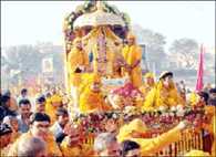 'गुरु मेरा कृपालु सुभाग हमारौ.' की धुन पर गमज़दा माहौल में जब जगद्गुरु कृपालु महाराज के अस्थि कलश की शोभा यात्र श्यामा श्याम धाम से निकली, तो उनके हजारों अनुयाइयों का हुजूम उमड़ पड़ा। जिधर नजर पड़ती, अनुयाई गुरु की जयकार करते नजर आ रहे थे। रविवार को सुबह शुरू हुई अस्थि कलश शोभायात्रा में हजारों देसी-विदेशी भ
